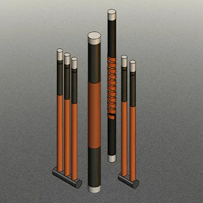 Silicon Carbide (SiC) also known as carborundum is a sintered material containing silicon and carbon utilized for the construction of SiC elements for application temperatures up to 1600° Celsius. These elements are generally tubular or spiraled in form varying from 10mm to 55mm in diameter at various lengths for vertical or horizontal applications. The elements can be provided as single or multiple leg units with termination on either end or on the same end depending on element and application selection.