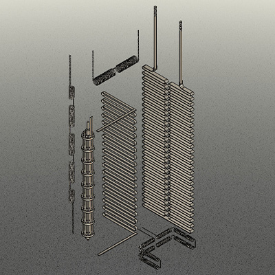 The element construction utilizes bare resistance wire or strip metallic material that is formed into various shapes as individual elements or heater assemblies. Depending on the grade, these elements can operate from 600° Celsius to 1400° Celsius. We utilize either Iron-Chromium-Aluminium (FeCrAl) or Nickel-Chromium (NiCr) alloys to construct these elements or heater assemblies.